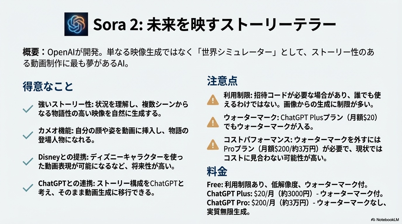 結論⑤:話題の「Sora 2」は、まだプロ用途には向かない