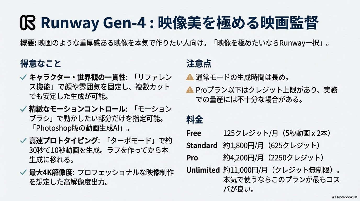 結論②:映画レベルを目指すなら「Runway Gen-4」一択。ただし“使い放題プラン”が必須