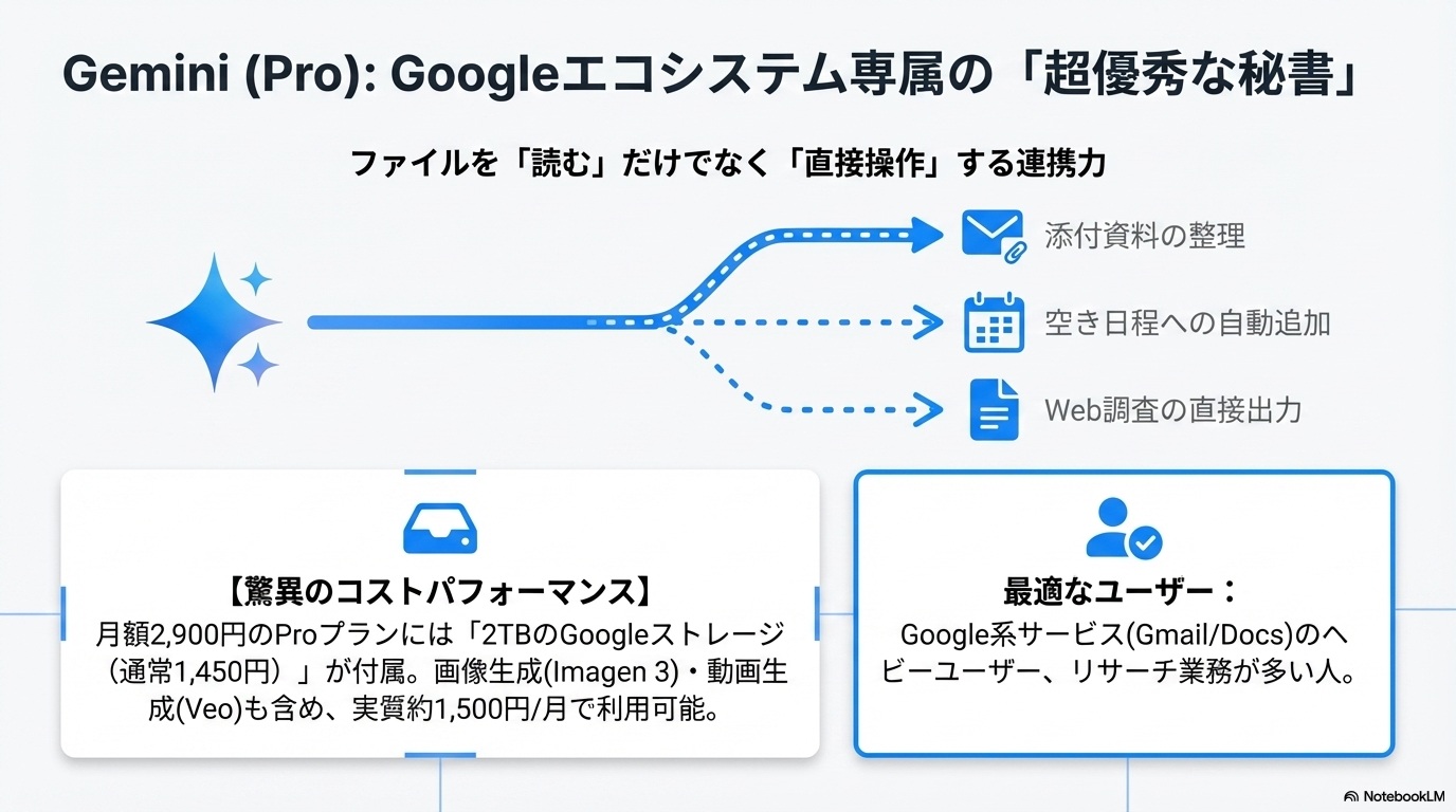 2. Gemini(Googleサービスとの圧倒的な連携力)