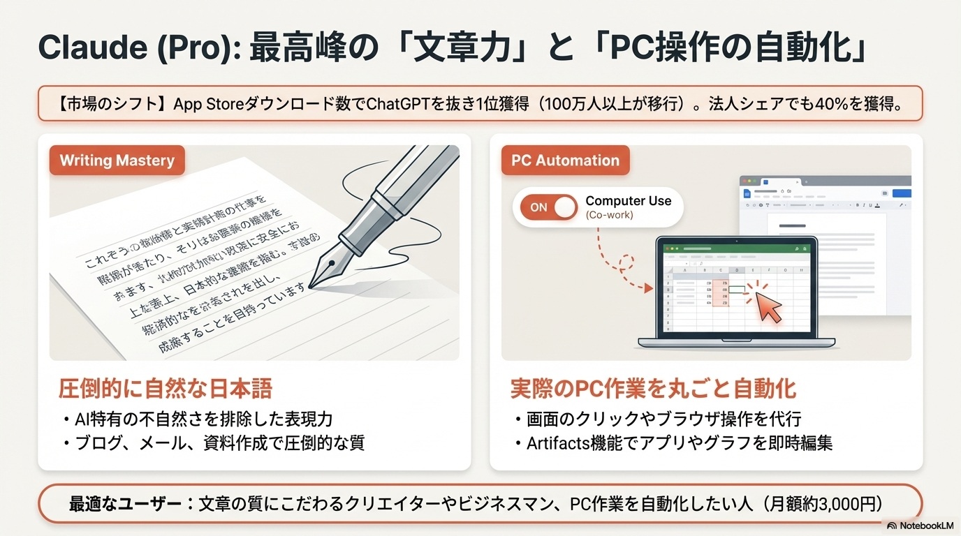 3. Claude(圧倒的な文章力とPC操作の自動化)