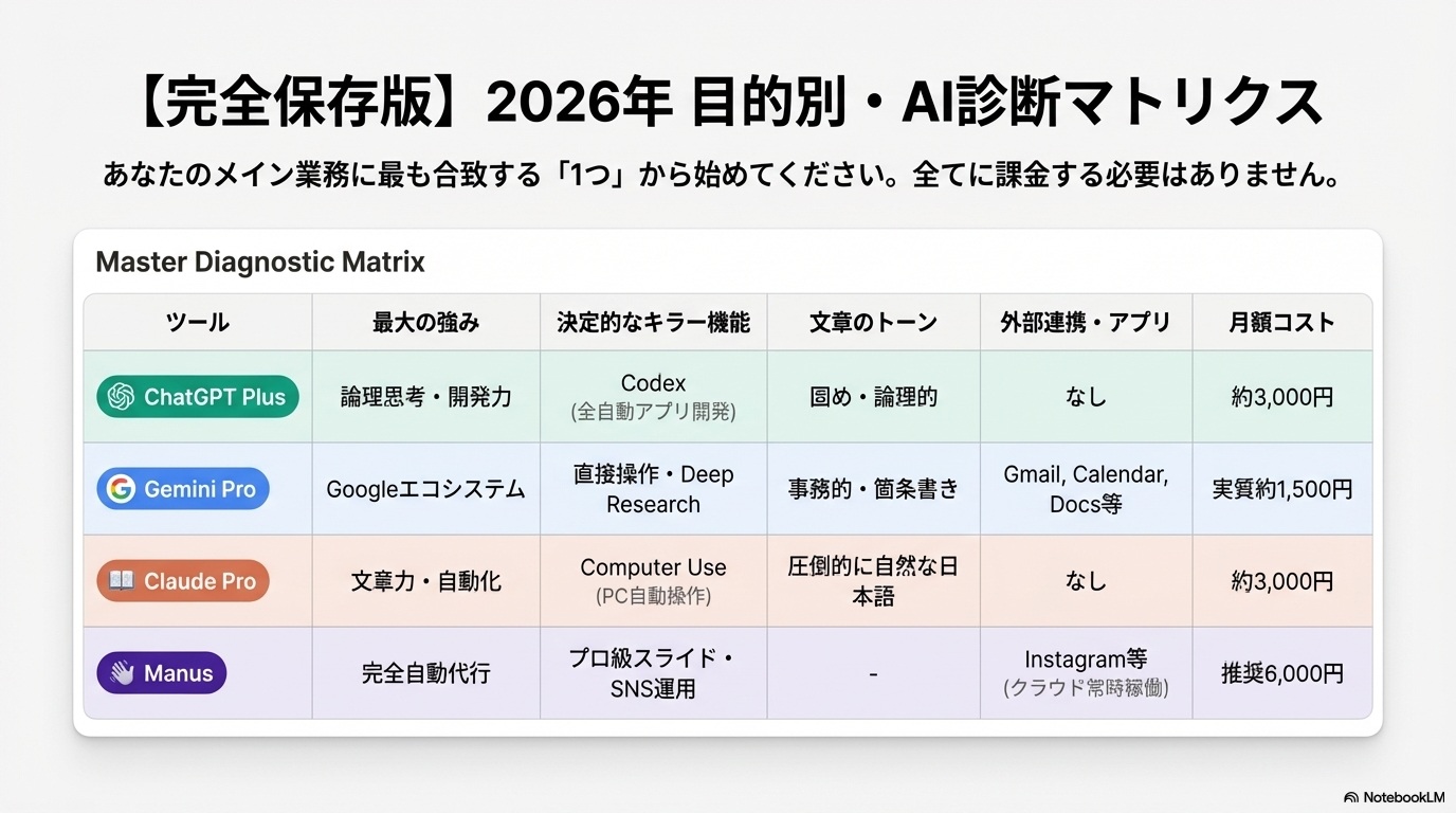 2026年時点での「本当に課金すべきAIツール4選」について、その特徴や活用法を分かりやすく詳しくまとめます。